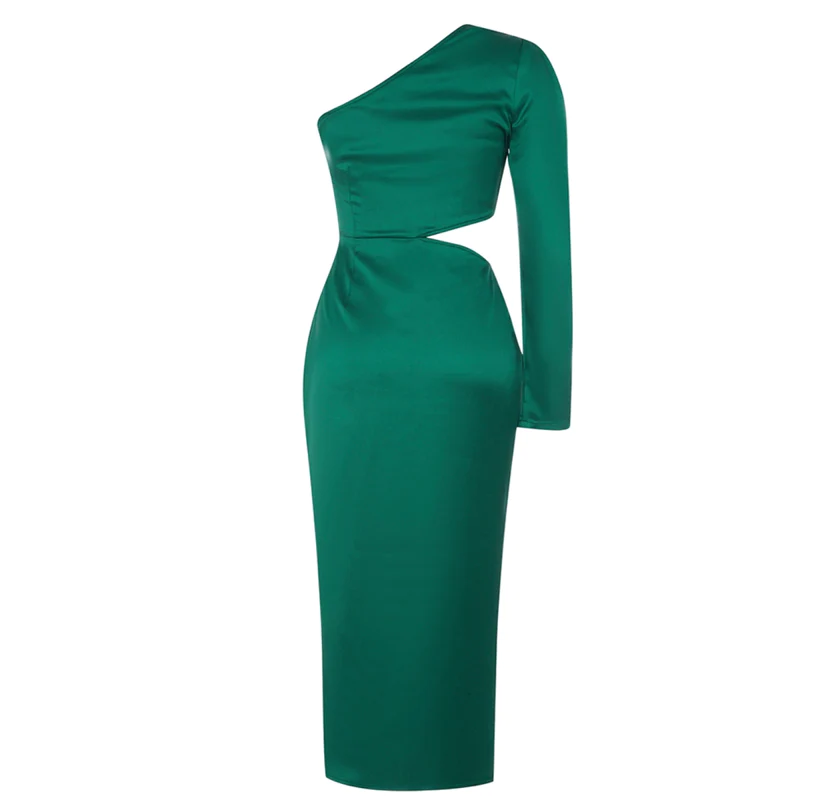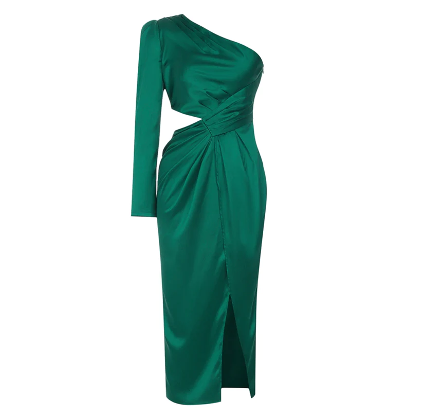 Abito da donna in tonalità verde smeraldo, con elegante manica lunga che conferisce un tocco di raffinata sobrietà. Il design affusolato valorizza la silhouette, mentre la morbida stoffa fluttuante assicura un comfort senza pari.