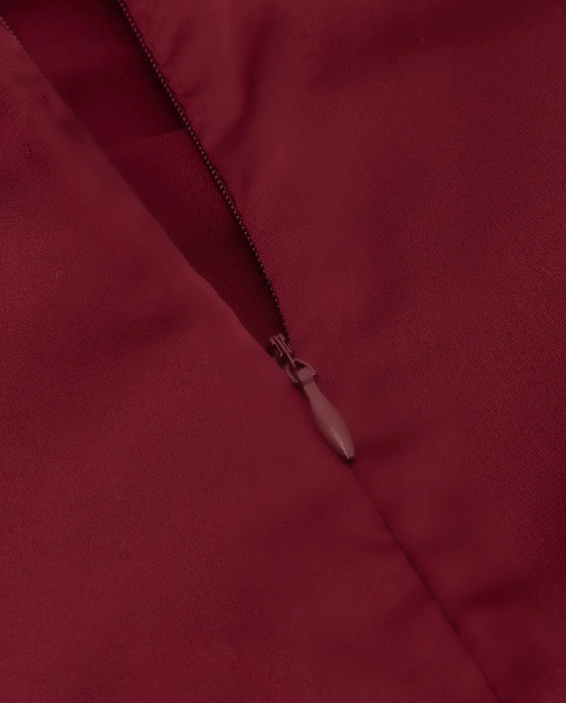 Questo abito da donna senza maniche, con una lunghezza elegante fino al ginocchio, è impreziosito da una delicata e raffinata collana posizionata sul collo. Il design elegante e attillato enfatizza la silhouette, mentre la mancanza di maniche aggiunge un tocco di moderna raffinatezza.