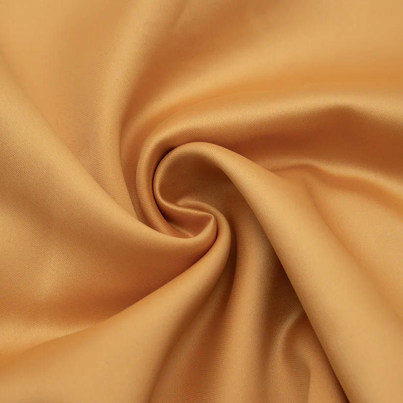Abito da donna con maniche lunghe, un colletto alto raffinato e una tonalità di ocra delicata, mentre il taglio aderente abbraccia la silhouette con grazia.