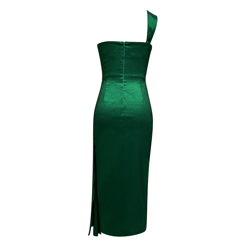 Questo abito da donna presenta un design unico con un pezzo lungo dalla parte laterale, aggiungendo un tocco di originalità e stile.